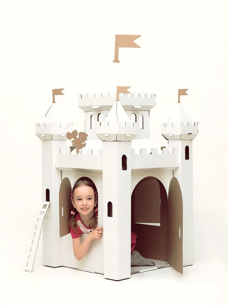 Моделът е същият като при къщата от шперплат, но на декорацията на замъка е отделено максимално внимание. Високите кули, знамената, които могат да се ушият от текстил в подходящ цвят, са задължителни елементи на сувенира.