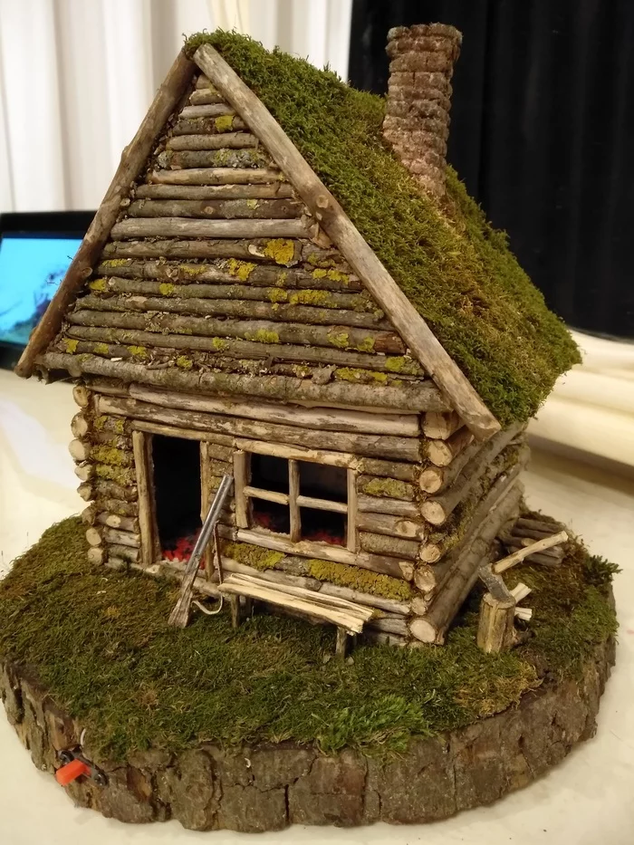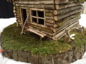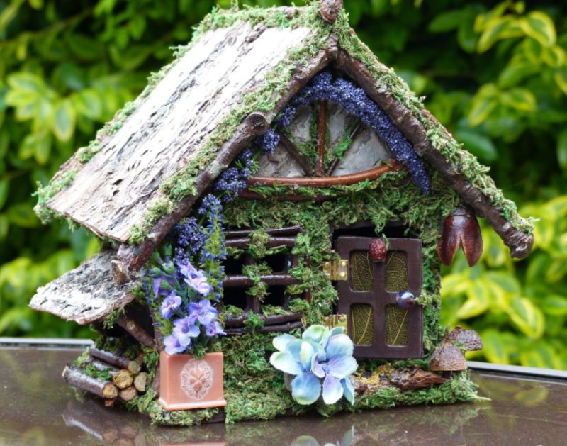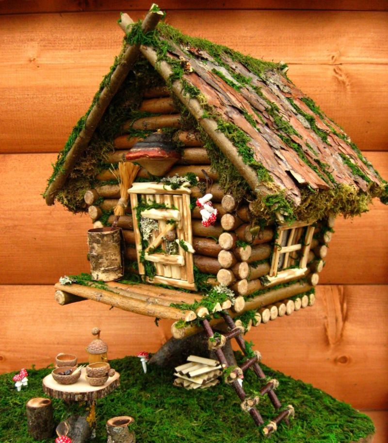 За да се постигне реалистичен ефект, покривът на такава структура е украсен с естествен мъх, който допълва идеално старата сграда.