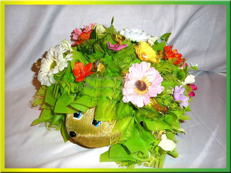 Важно! Ръчно изработен таралеж - много забавна и весела играчка. Затова колкото по-светло се окаже, толкова по-добре. Особено красиво изглежда екипировката на бодлите на таралежа под формата на цветни плодове и ягодки. А ядливите таралежи с бонбони и истински плодове по бодлите ще украсят всяко детско парти.