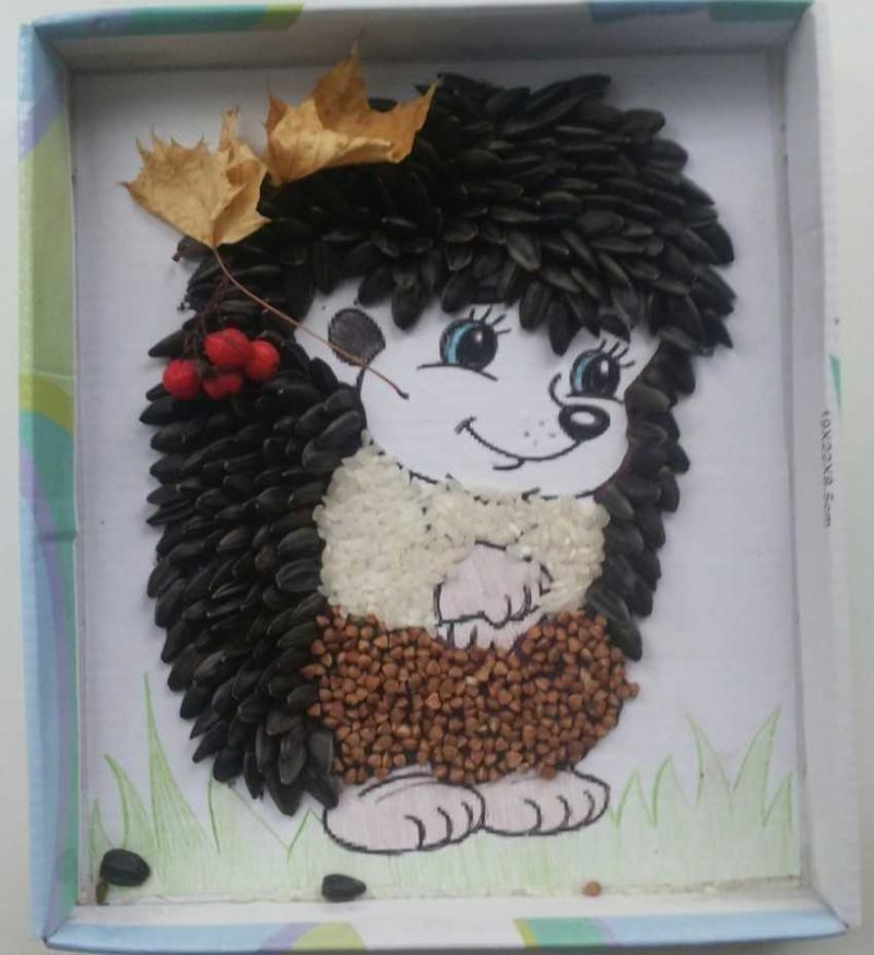 Материалите от природата помагат на децата да опознаят природата по-добре и да я възприемат като материал за занаяти. Необичайните таралежи се получават под формата на апликация, която е изработена върху картон, а ролята на игличките са житни класове.