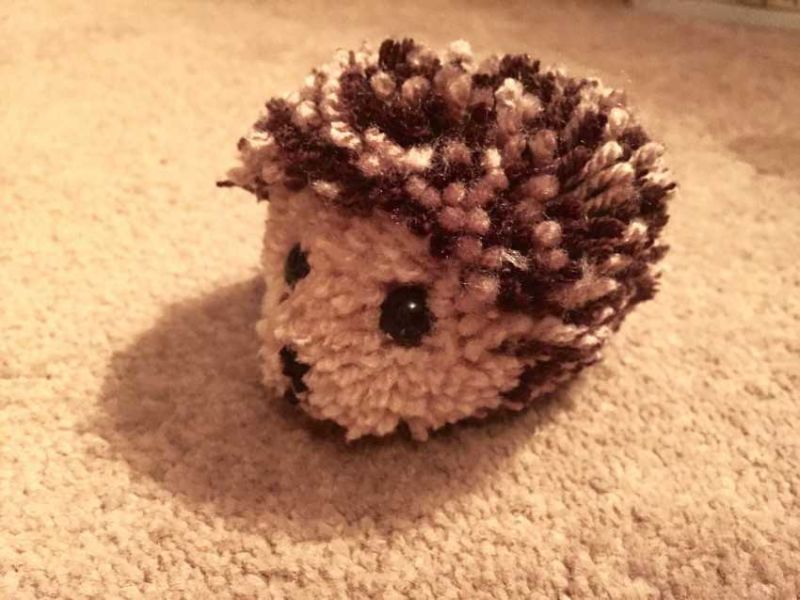 - Направете помпони в различни цветове от преждата и ги залепете върху шиповете - това ще са плодовете и ягодите, които таралежът обича да носи на гърба си.