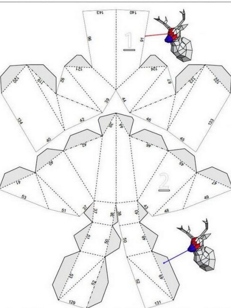 - Шаблони на тялото на северния елен с глава и уши, муцуна, рога, вътрешна част на ушите и копита