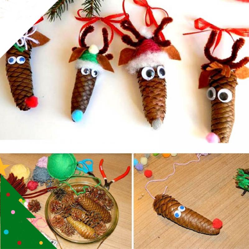 - Прикрепете всички части към по-малък конус, за да направите главата на северния елен.