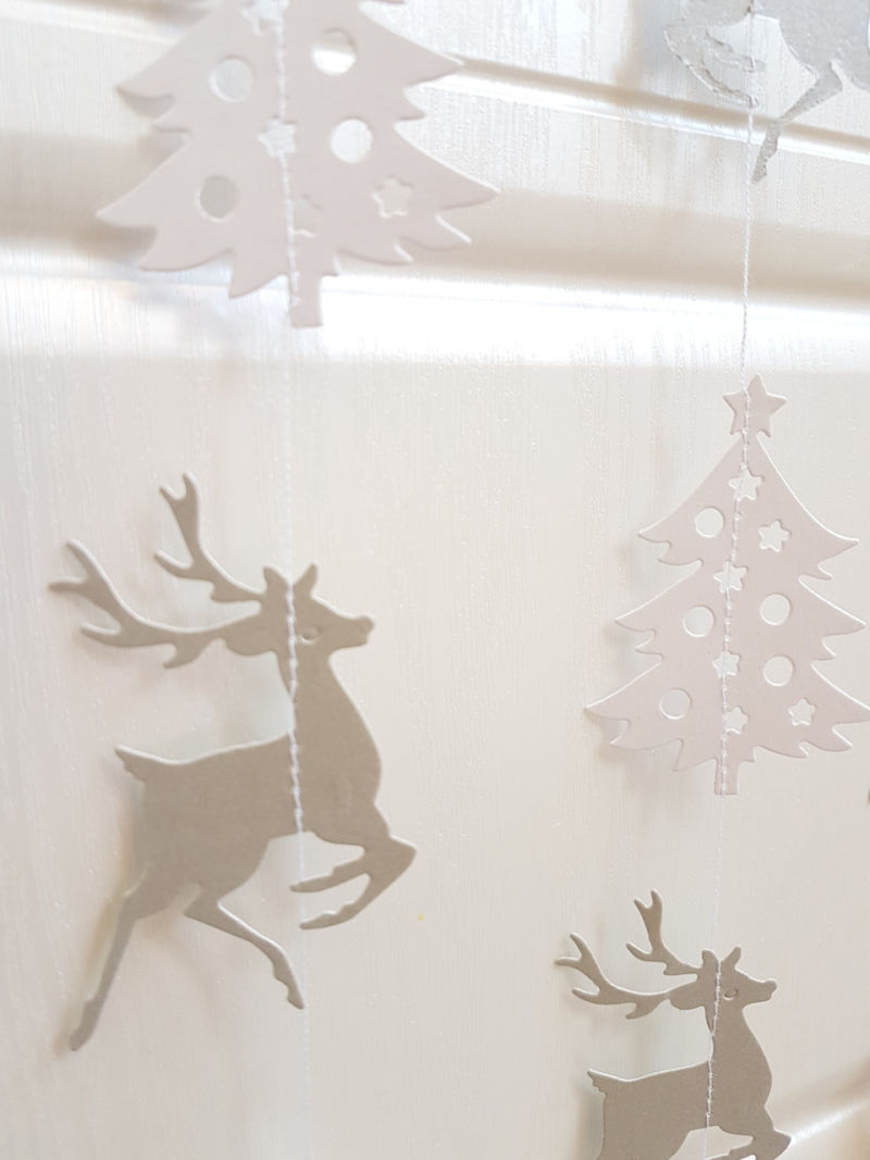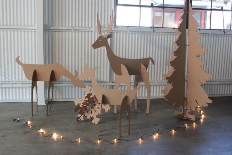 - За да поставите елените, изрежете шаблон за основа от дебел картон. Намажете я добре с лепило и залепете върху нея северния елен.