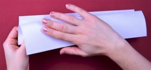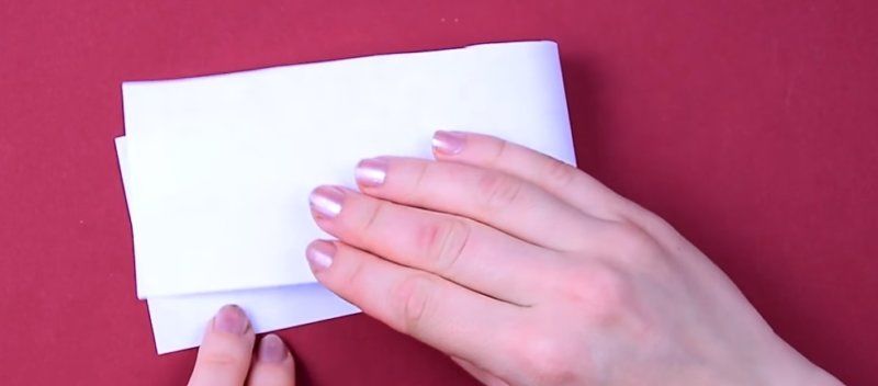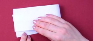 - Сгънете го наполовина, за да се получи малък триъгълник. По този начин се получават необходимите линии на сгъване.