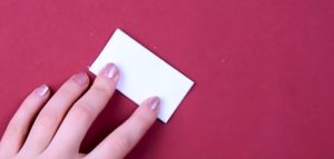 - Сгънете на половина две ленти от бяла хартия за квилинг с ширина 7 мм.