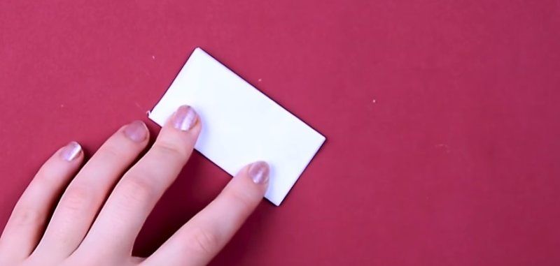 - Изрежете правоъгълник с размери 20x15 см от цветен картон и го сгънете наполовина.