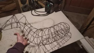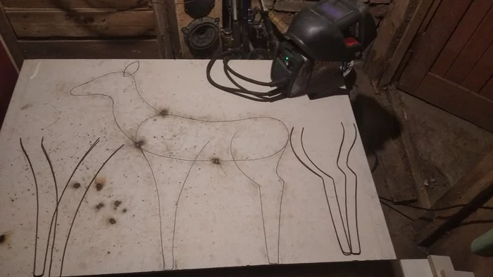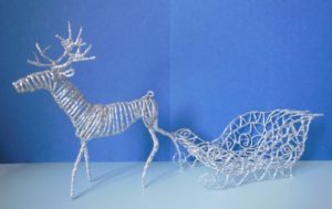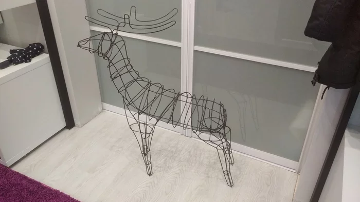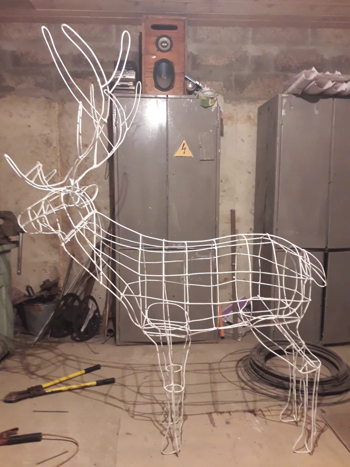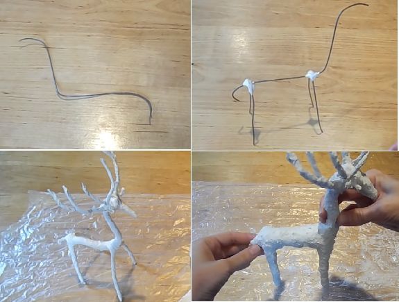 - Първо направете рамка от тел за елена. Тя може да бъде обемна или плоска.