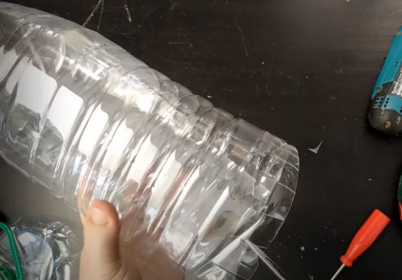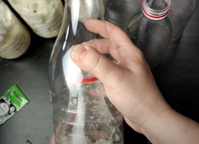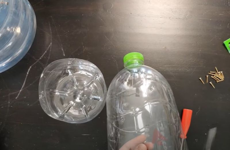 - С помощта на нож направете малки отвори в пластмасовата бутилка за тялото.