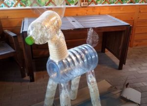 - След това трябва да увиете цялата фигура на животното с фолио, като го нарежете на ленти с ширина 4 см.