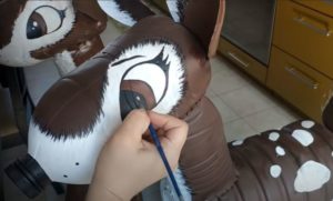 - Залепете муцуната от едната страна на тялото и ушите отвътре, а копитата залепете от двете страни.