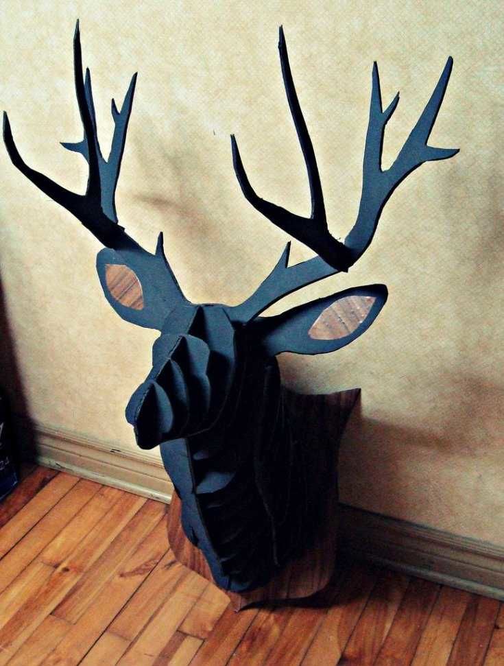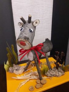 - Оцветете творението в желания от вас цвят, нарисувайте муцуна, закрепете рога от клонки. Начупените клонки ще изглеждат красиво.