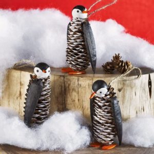 За изработването на тази ръчна изработка са ни необходими шишарка и пластилин. Конусът е тялото на пингвина: