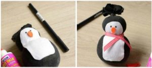 - За да украсите северната птица, можете да изваяте шал и шапка, така че ръчната ви изработка да изглежда още по-оригинална.