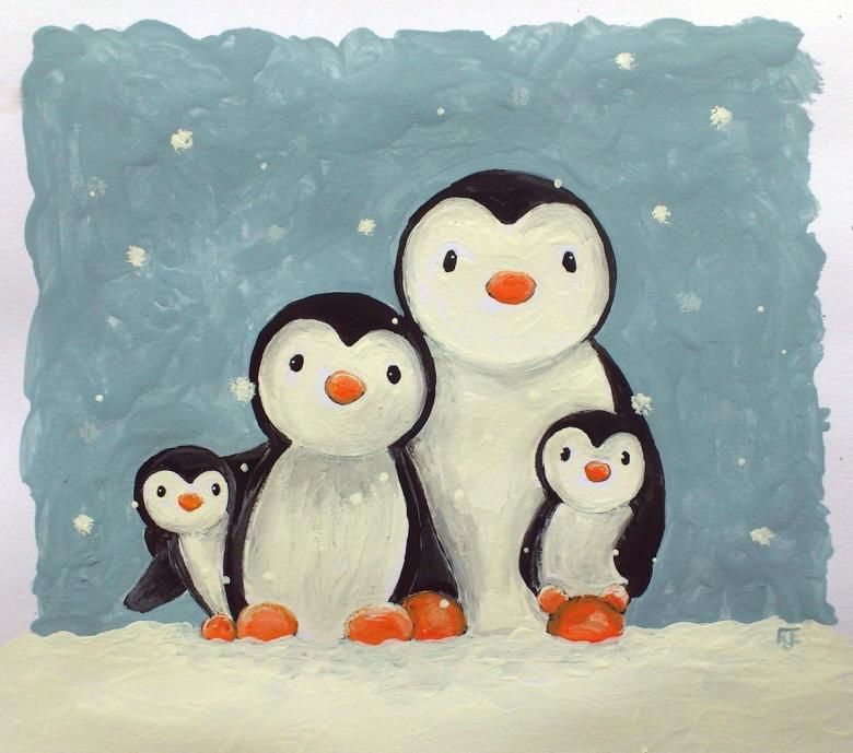 - За да направите картината по-интересна, можете да добавите към фона ледена покривка, риба или да направите цяло семейство за нашия герой.
