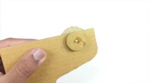 - В горния капак на ръцете пробийте страничния отвор, вземете друг капак, пробийте долната част в центъра, прекарайте гумената лента през торса първо в капака с централния отвор и след това прикрепете ръката през страничния отвор.