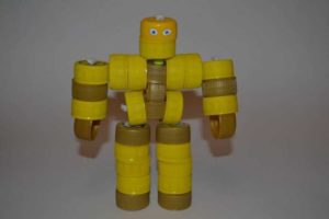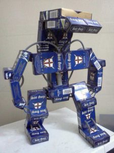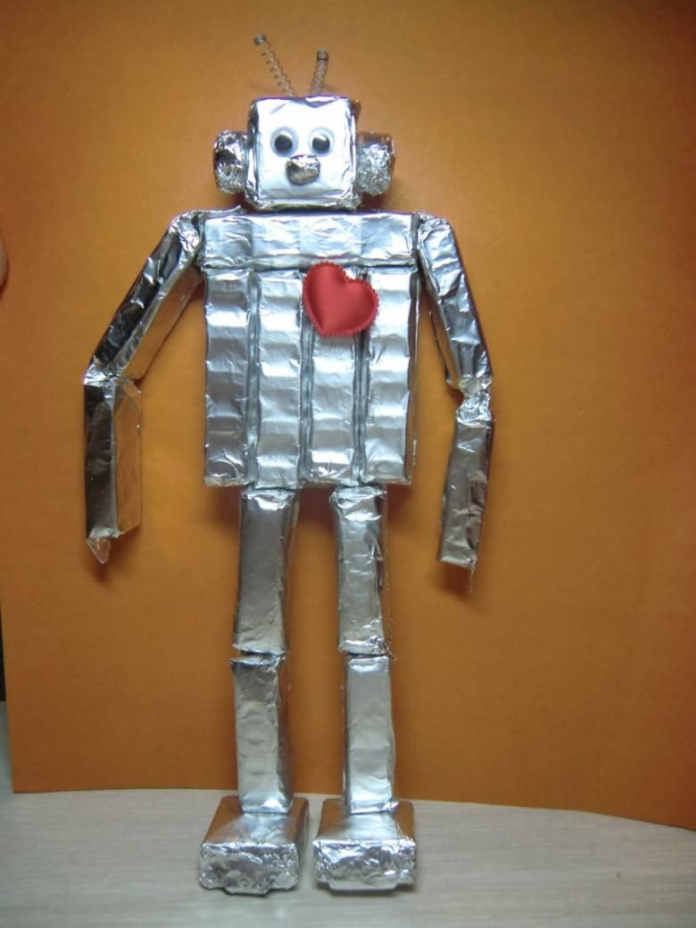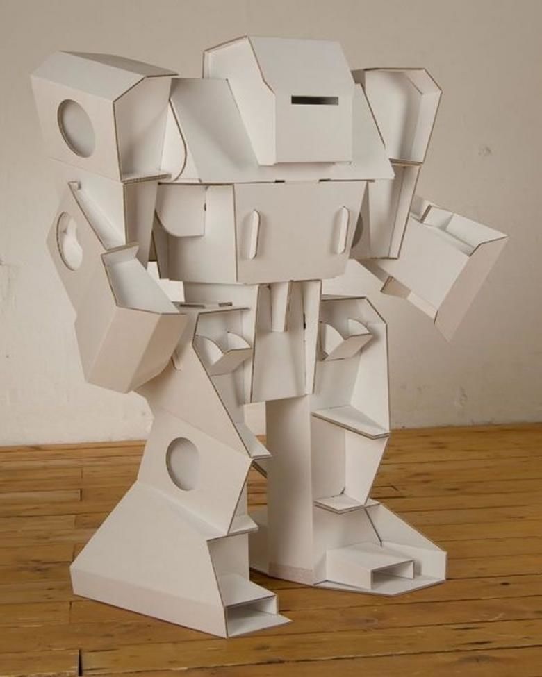 За направата на робот с човешки ръст могат да се използват картонени кутии с различни размери, но картонените кутии за мляко, лекарствата и обувките улесняват работата с модела.
