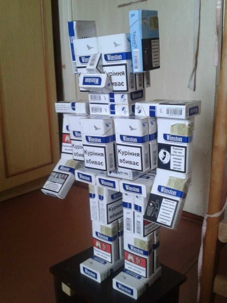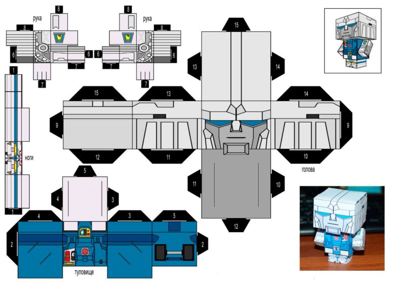 - Кутиите трябва да се залепят така, че силуетът да прилича на киборг. Антени, оръжия, инструменти, дистанционно управление могат да се изработят и от кутии или листове картон.
