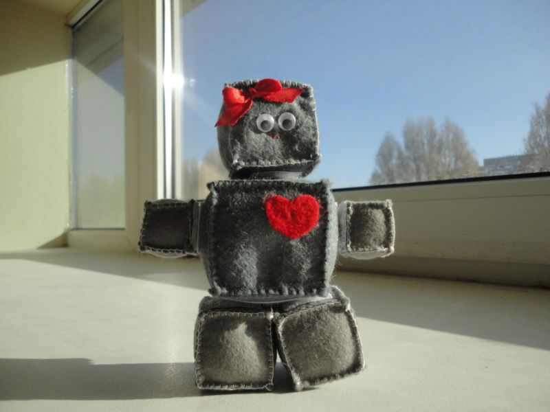 Роботът от филц може да не е войник, а по-скоро бавачка или рецепционист в хотел, така че декорацията трябва да бъде съобразена с идеята. За бавачката са подходящи панделки, боне или престилки, а за рецепционистката - вратовръзка, шапка или нашивка с логото.