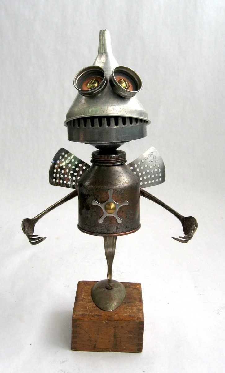 Използвайте самонарезни винтове или усукана тел, за да направите андроид, планетарен изследователски кораб или автоматичен космически кораб, поддържан от алуминиеви вилици и лъжици.