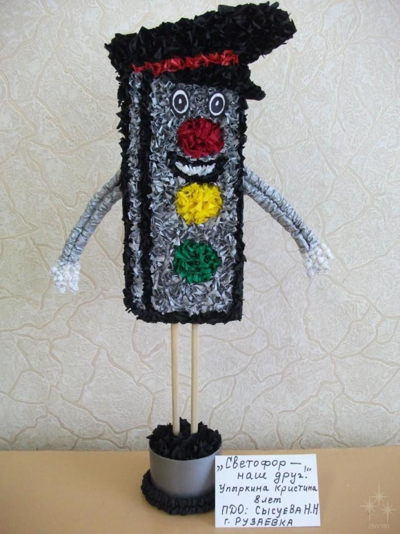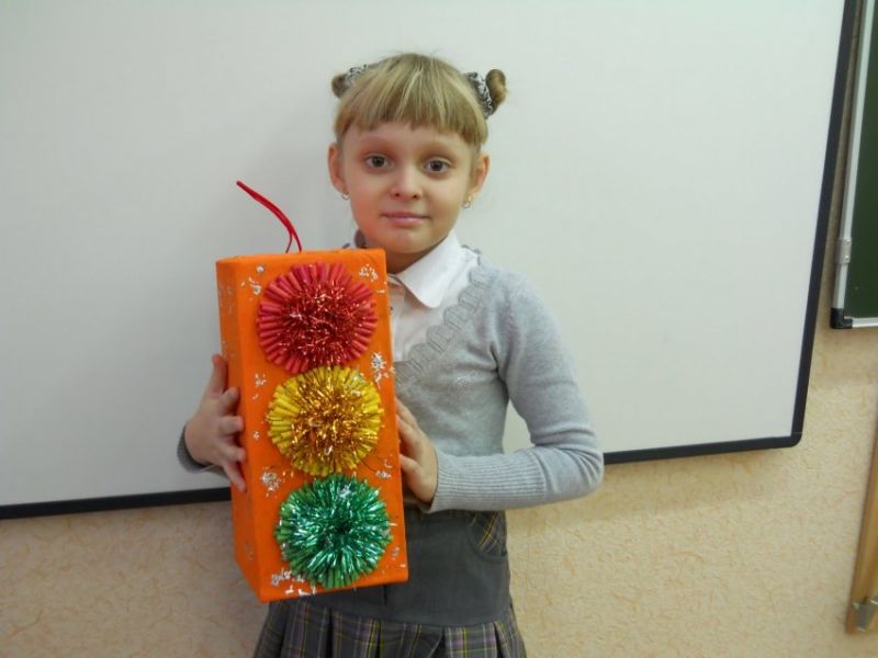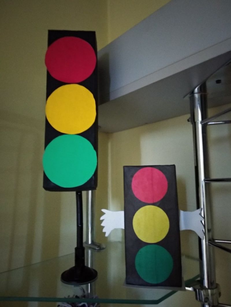 Ръчно изработени занаяти за светофари: плоски и обемни форми в различни техники за деца от импровизирани материали