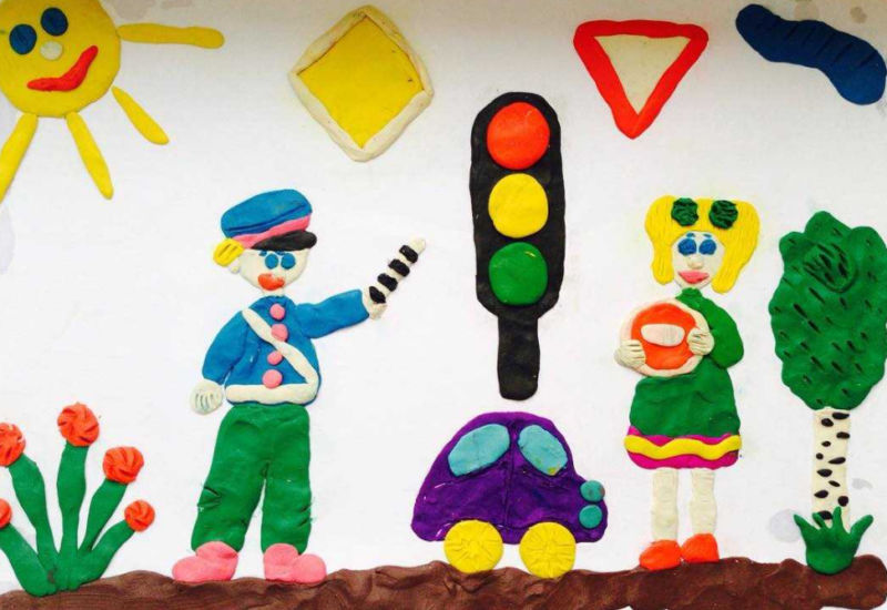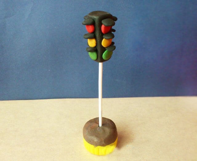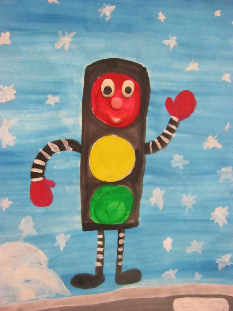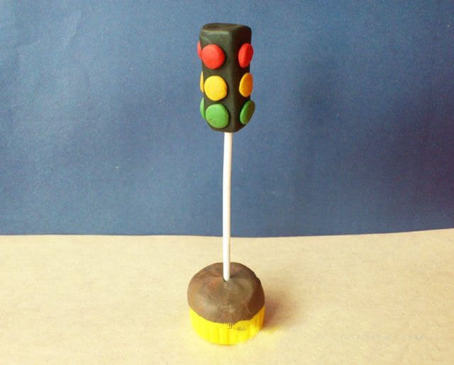 По-големите деца могат да направят по-сложен дизайн. За целта изработете от пластилин светофар и прикрепете към него различни цветни топки. Можете да украсите светофарите с пластелин или цветни хартиени сенници.