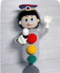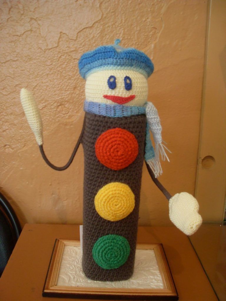 Момичетата могат да бъдат помолени да изплетат светофари с помощта на игли или плетене на една кука. Ако имате умения за работа с мъниста, можете да направите образователна конструкция от тях. Светофарът, изработен от прежда, може да бъде триизмерен под формата на правоъгълна възглавница или плосък, като салфетка.