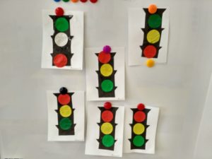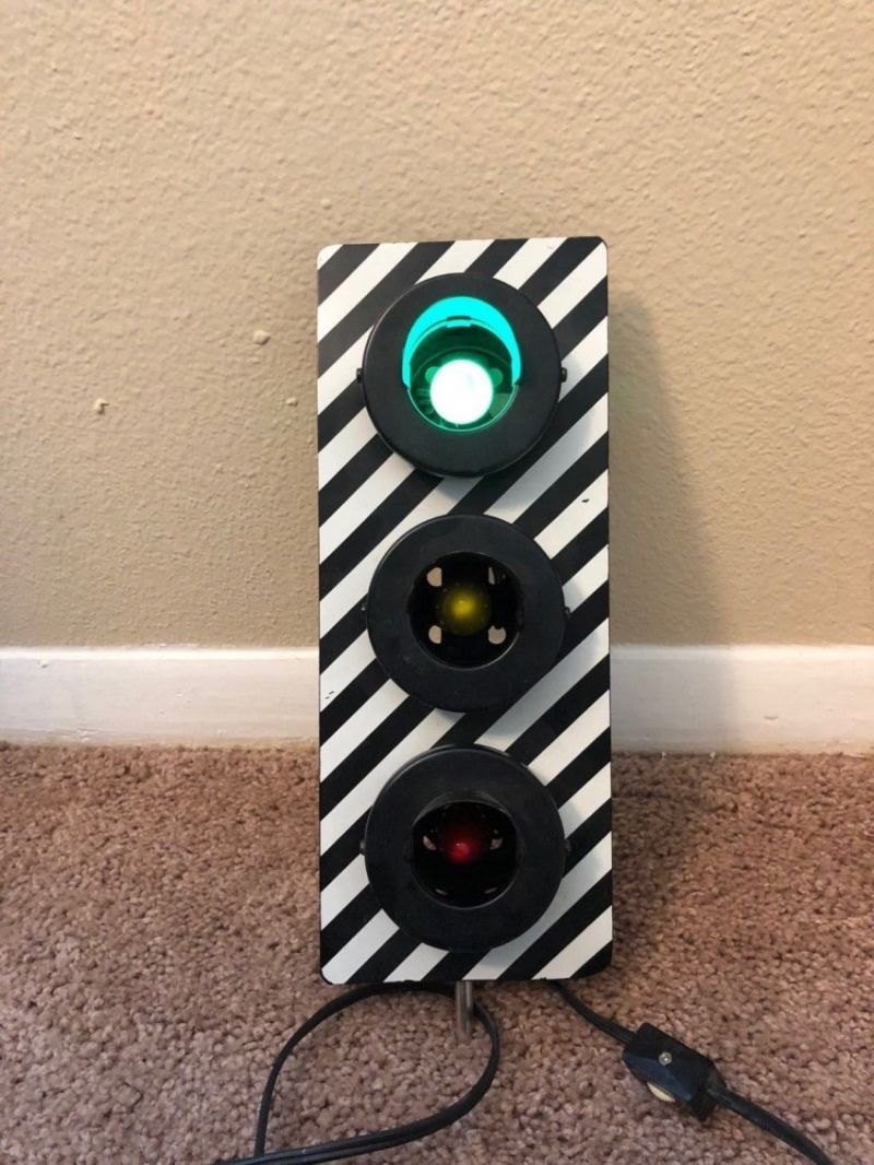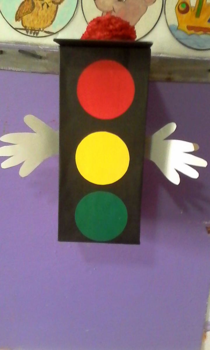 Тези светофари могат да се изработят като апликации за окачване на стена. Или залепете цветни кръгове върху картон или кутия, за да ги поставите на подиум.