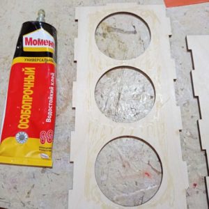 - Могат да се използват светодиодни крушки - след това в шперплата трябва да се изрежат кръгове и в дупките да се залепи боядисана слюда.