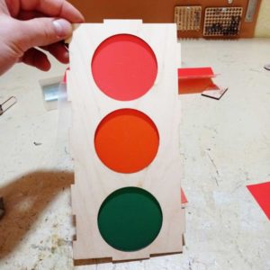 - Готовите дискове се залепват в правилния ред върху картонени, пластмасови и дървени повърхности. Могат да бъдат създадени най-необичайни дизайни, но редът на цветовете в светофара остава същият.