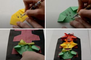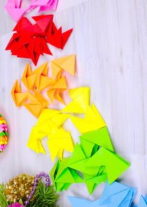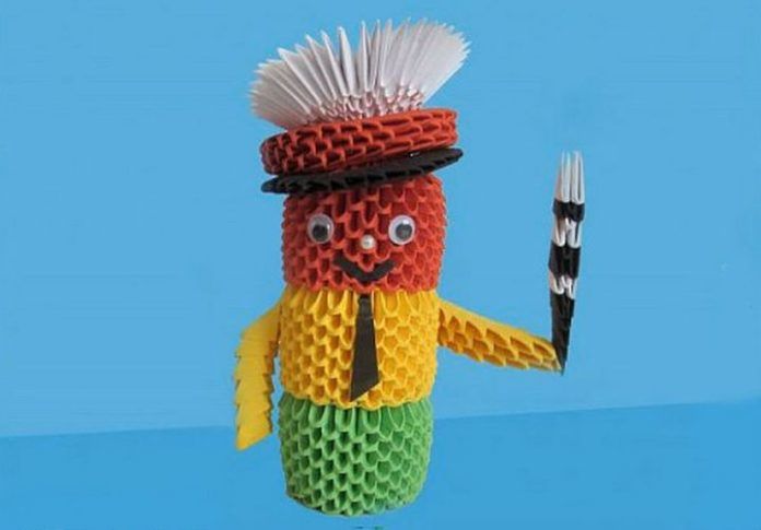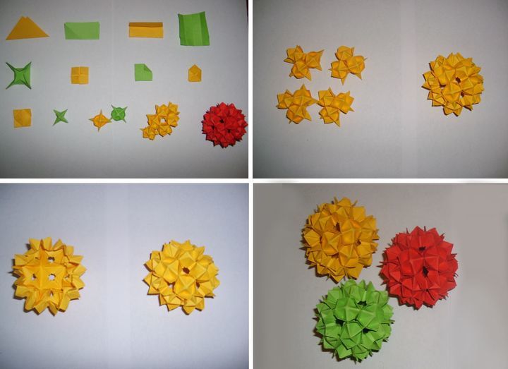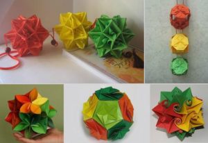 Самата техника на оригами не е трудна, но трябва да се научите как да сгъвате правилно частите. Те се оформят в цветни кръгове и се залепват върху подходяща основа.