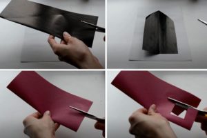 - За целта ще са ви необходими три от тях. Залепете ги една за друга, за да се получи цилиндър.