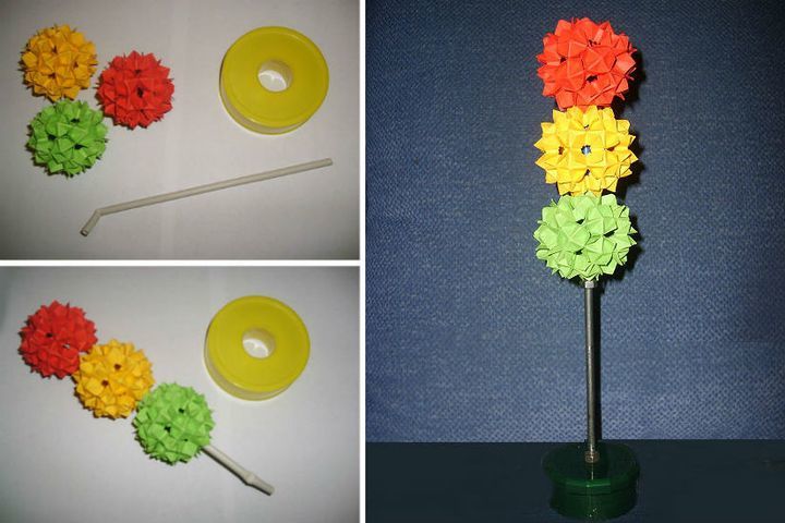 Ако сте запознати с техниката на оригами, тогава няма да има трудности с производството на светофари. Най-важното е да се намери материал за основата, върху която ще се лепят частите. Използвайте както хартиена основа, така и пластмаса и дърво.