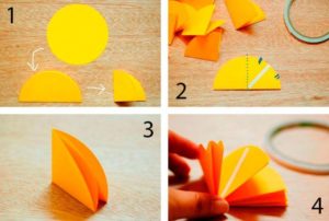 - Прегънете краищата на венчелистчетата леко нагоре. Залепете оранжев кръг в центъра.