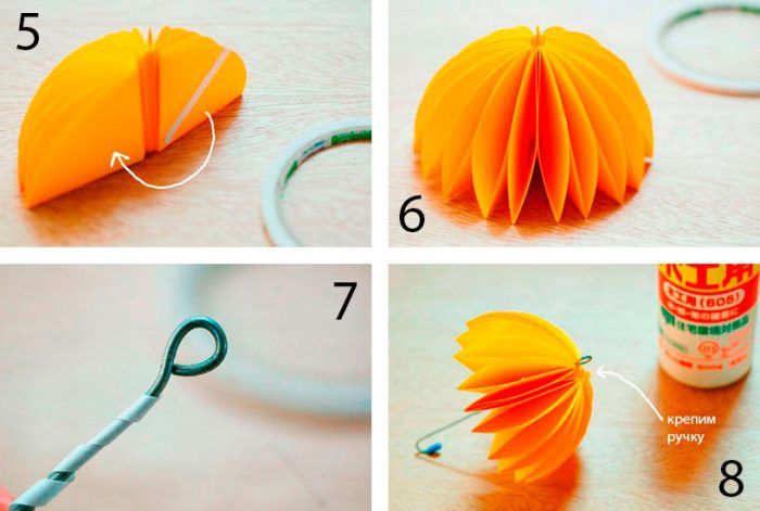 Ръчно изработеният хартиен чадър е невероятно пъстър. Тя може да се използва за украса на стая, за детски игри или за празнична маса.