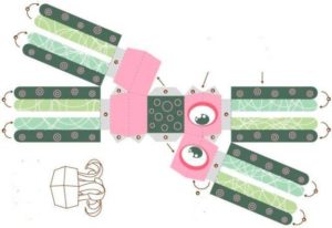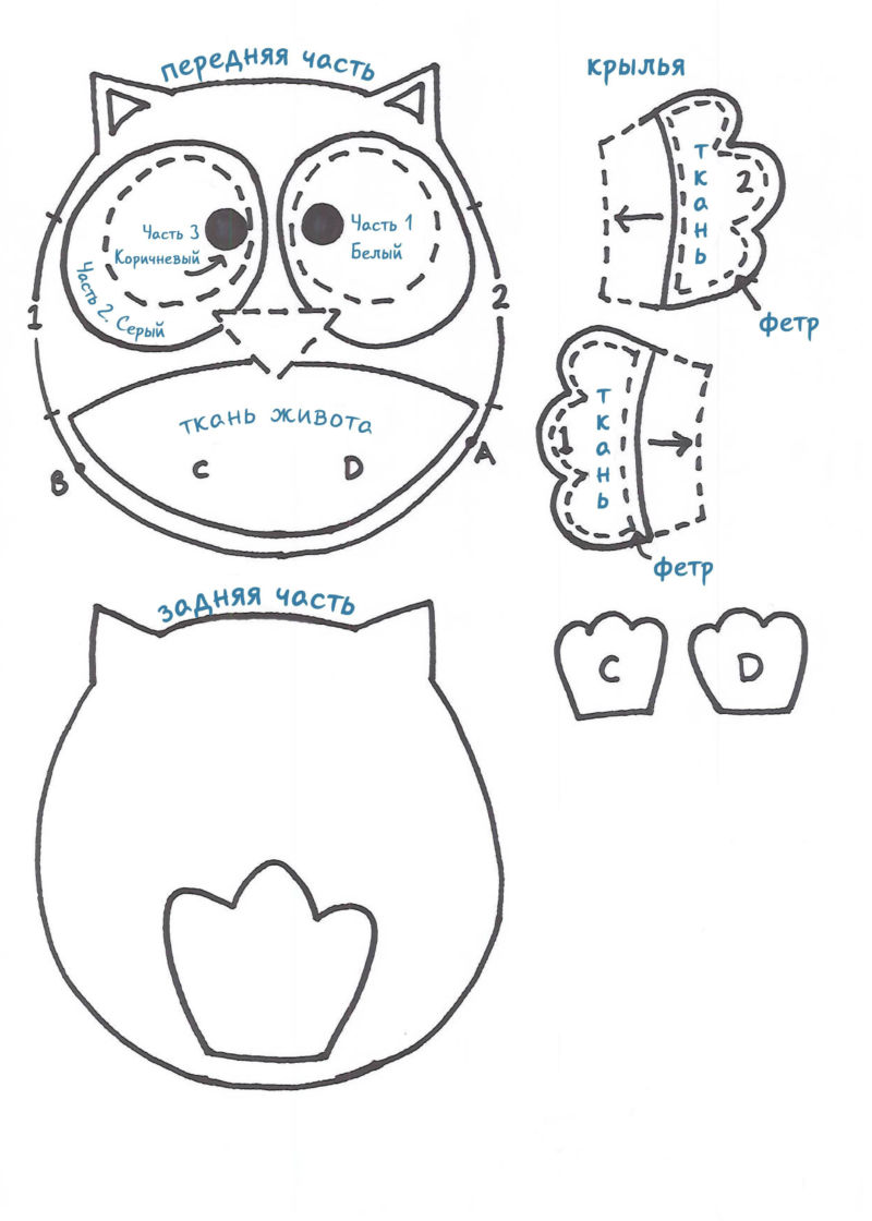 - Вземете модела на бухал, частите му, прикрепени към филца, и го проследете с молив. Изрежете готовите части по контура.