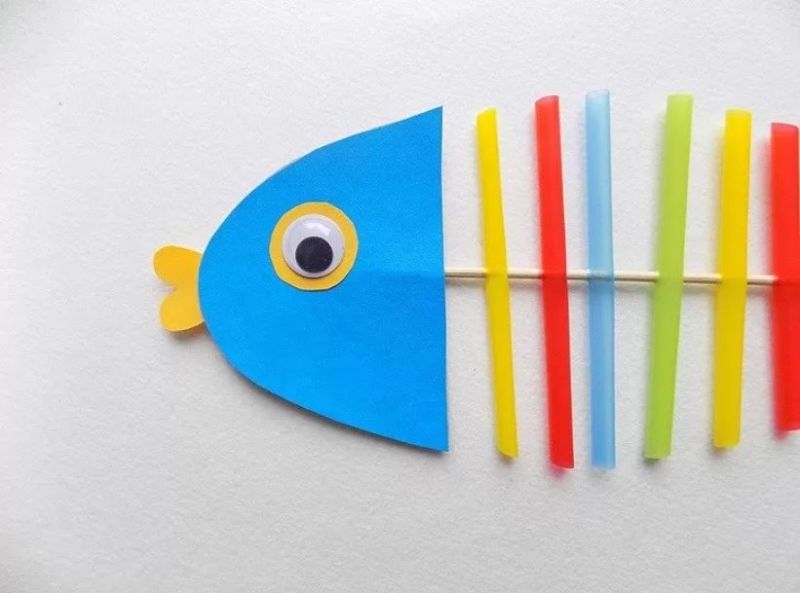 - От задната страна на рибката залепете клечка за сладолед. Като държите пръчката, можете да правите вълнообразни движения на рибата.