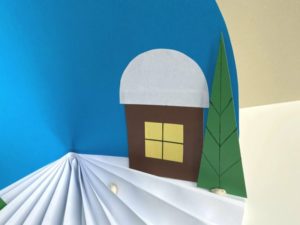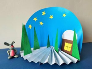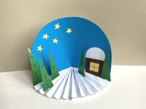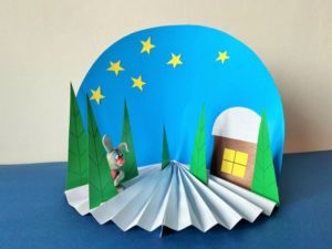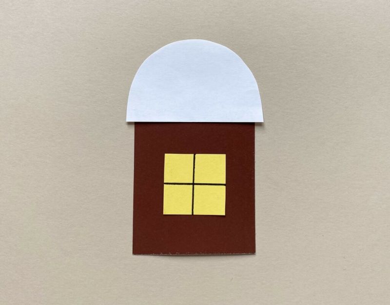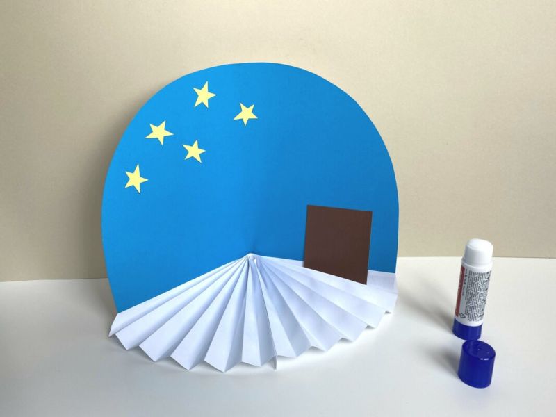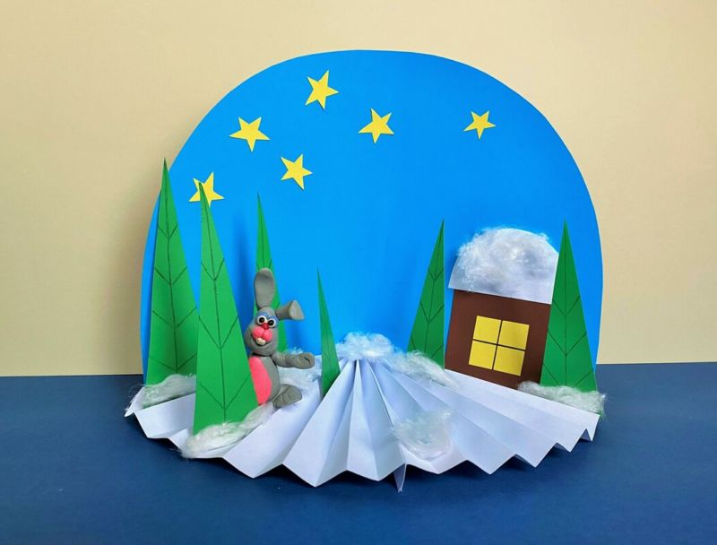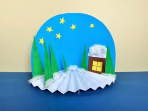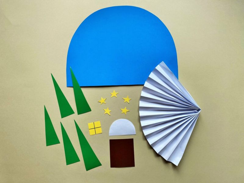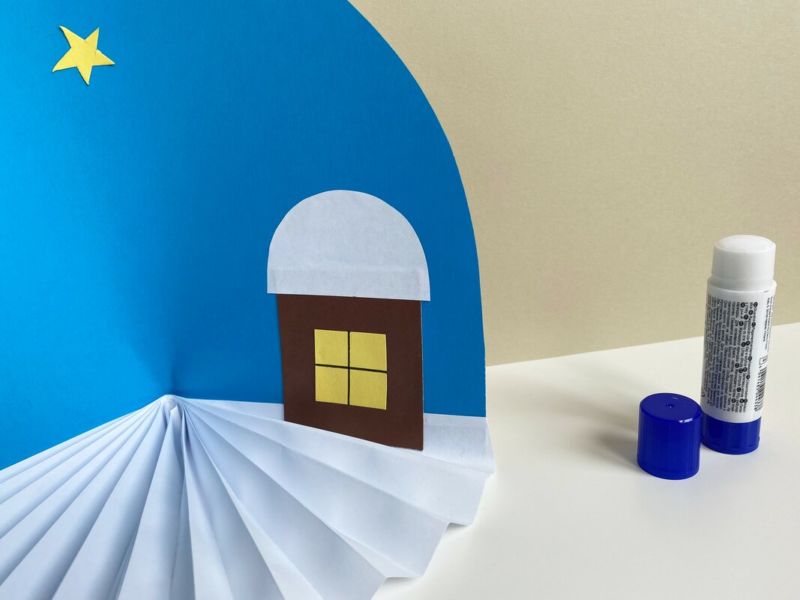 - Освен това от цветната хартия може да се изреже дърво или къщичка и да се покрие със сняг от памучна вата.