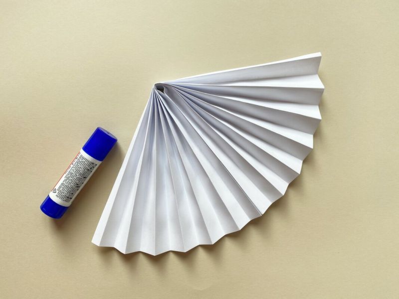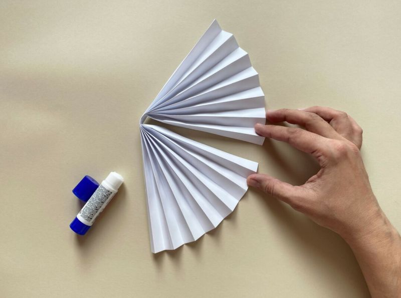 - Дългите хартиени ленти, оформящи кръг, се залепват в центъра с лепило или телбод. Ивиците се добавят постепенно, докато тиквата се сглоби.