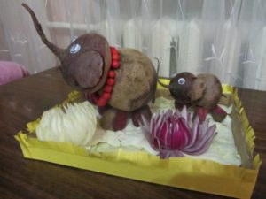 - Муцуната се оставя недокосната, а останалата част от тялото се покрива със семена, които имитират игли. Семената се притискат внимателно в пластилина.