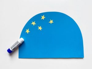 - Първото нещо, което трябва да направите, е да изберете цветен фон - най-подходящ е син или синя хартия.