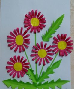 - Изрязват се ленти - две ленти с еднаква дължина, следващите две са по-къси с 1 см, следващите са още по-къси и т.н.