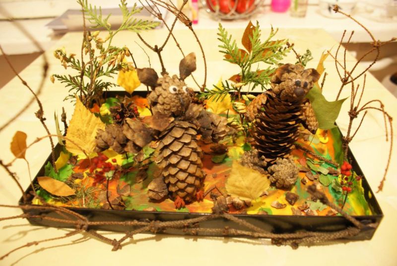 Изделията от конуси за детската градина също са на есенна тематика. От шишарките се правят прекрасни птици и животни. Освен листата и шишарките, списъкът на есенните природни материали включва: