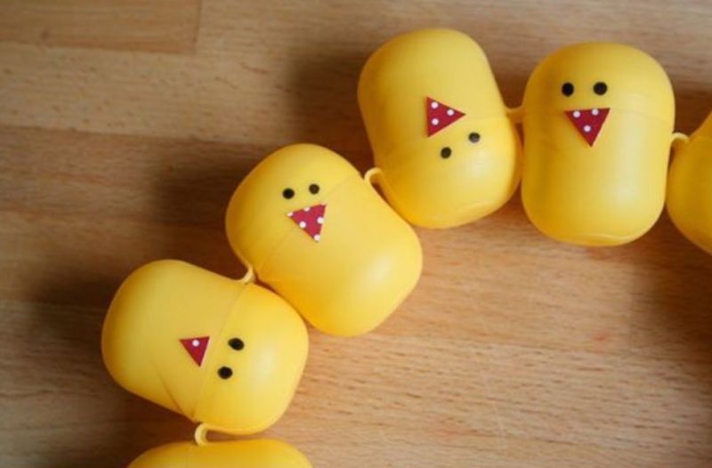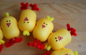 Прекрасното пиленце е чудесна пролетна ръчна работа за детската градина. За да го направите, ще ви трябват оранжево яйце от Kinder Surprise, пластилин и картон. Етапи на изпълнение: