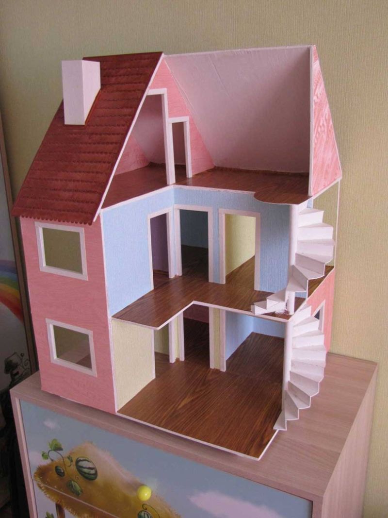 Само за да се гарантира, че тези атрибути в къщата за кукли ще продължат възможно най-дълго вечери, си струва да го създадете от много дебел картон.