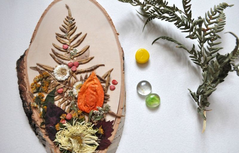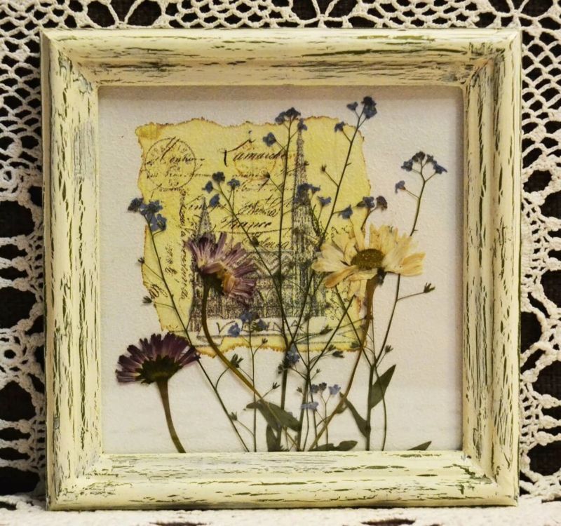 Необходими са ви сухи цветя и различни естествени материали. Панелите и картините, създадени с тези техники, са очарователни и очарователни. Това могат да бъдат класически пейзажи и натюрморти, портрети или абстрактни символични сюжети.