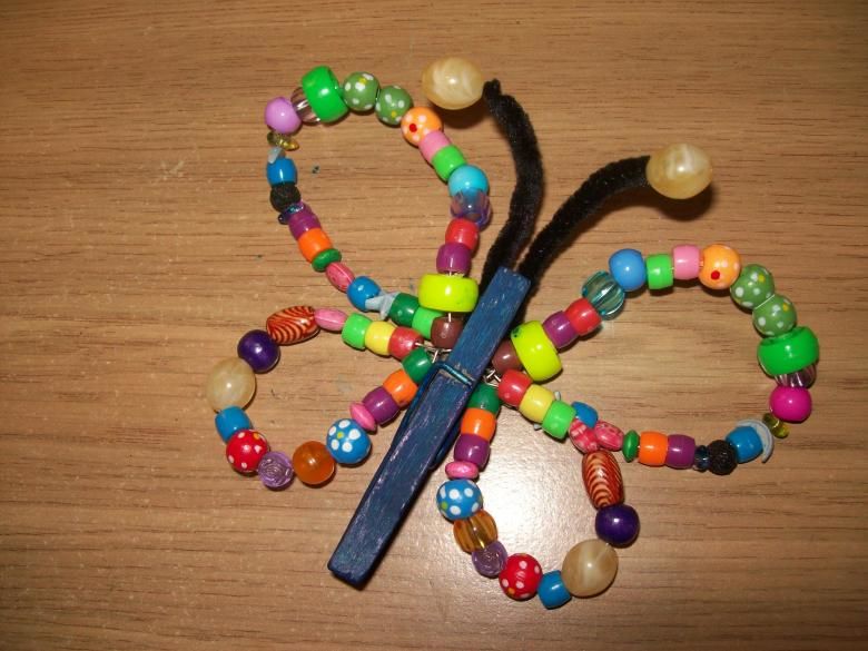 - огърлици и мъниста - от усукани хартиени части, цветни пера.