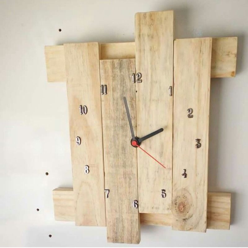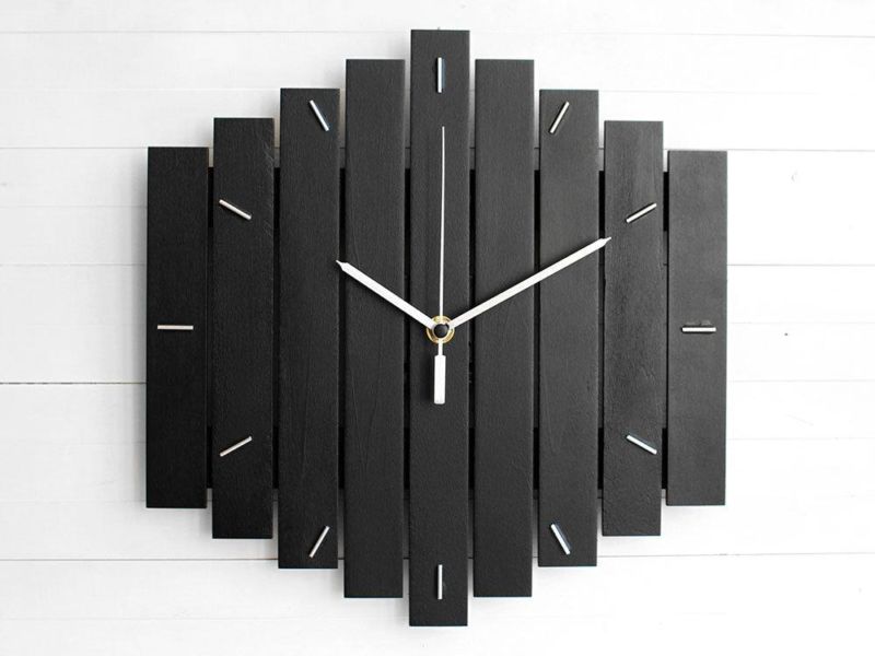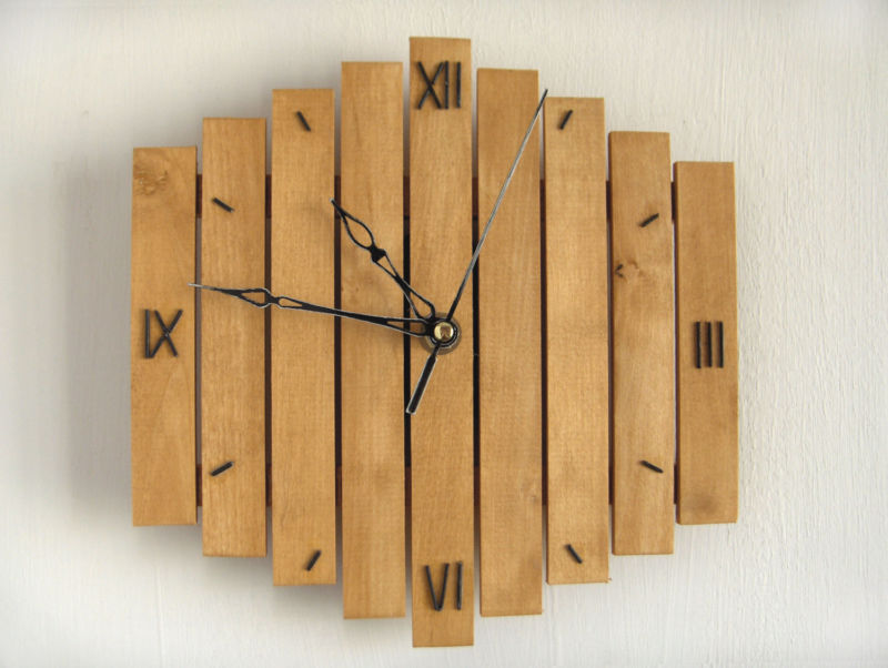 Какво ви е необходимо: завършен часовников механизъм, 12 фини дървени пирона, 15 тесни летвички, пистолет за лепило.