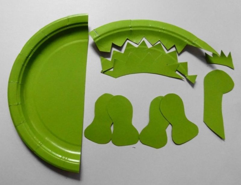 - Начертайте върху лист картон главата и опашката на бъдещия динозавър и изрежете детайлите.