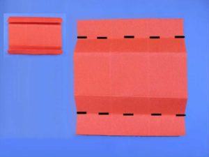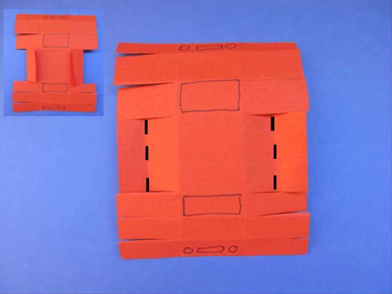 - В центъра му очертайте по-малък правоъгълник, изрежете го от три страни и огънете четвъртата.